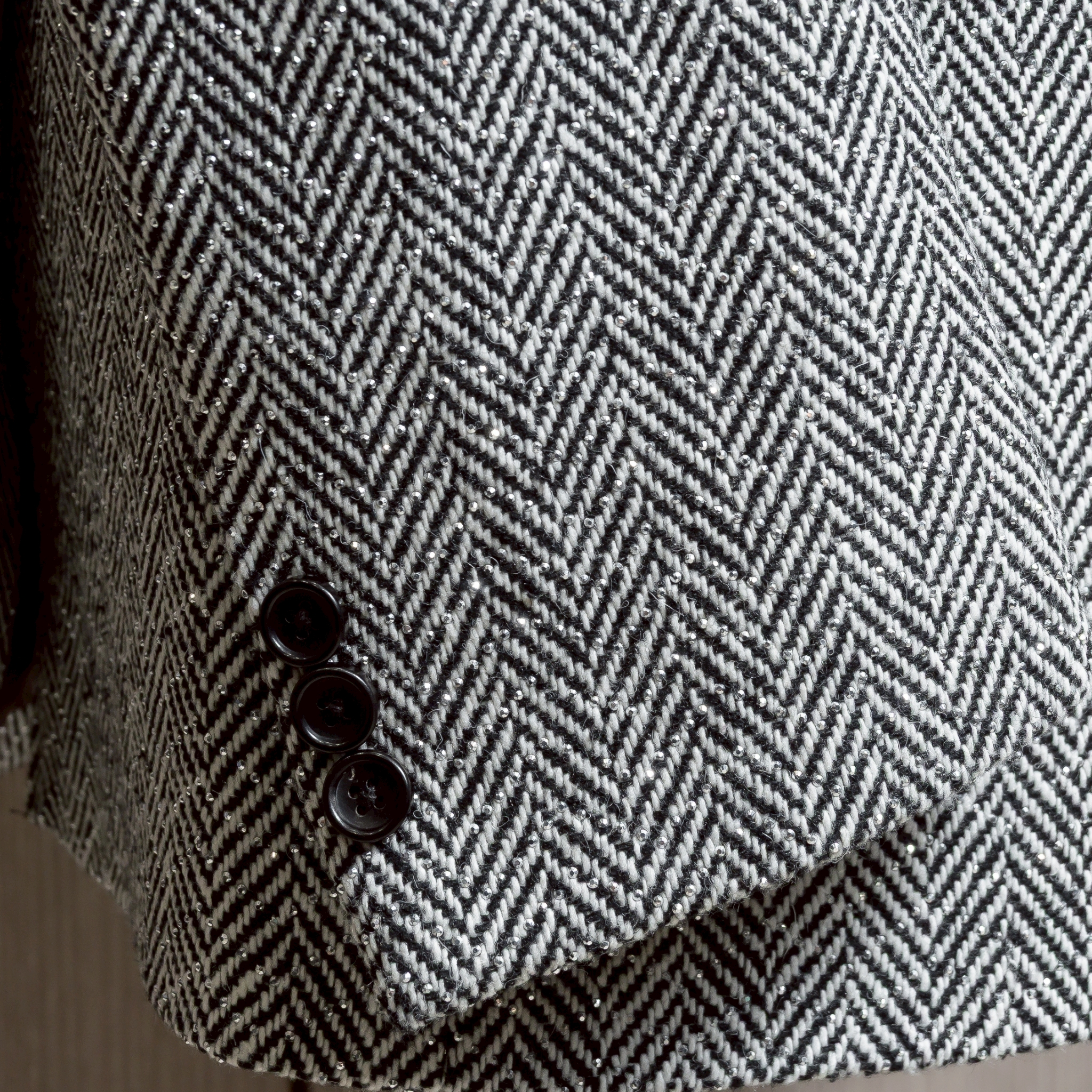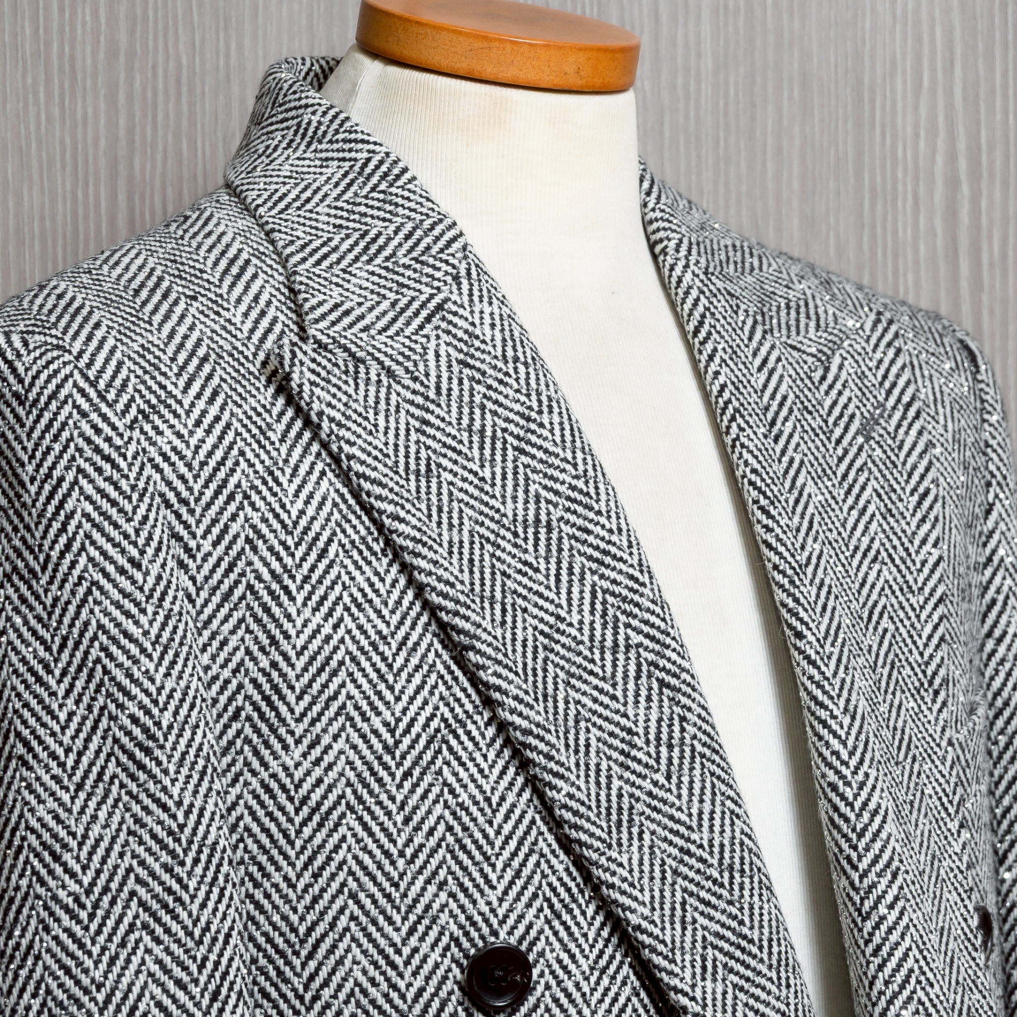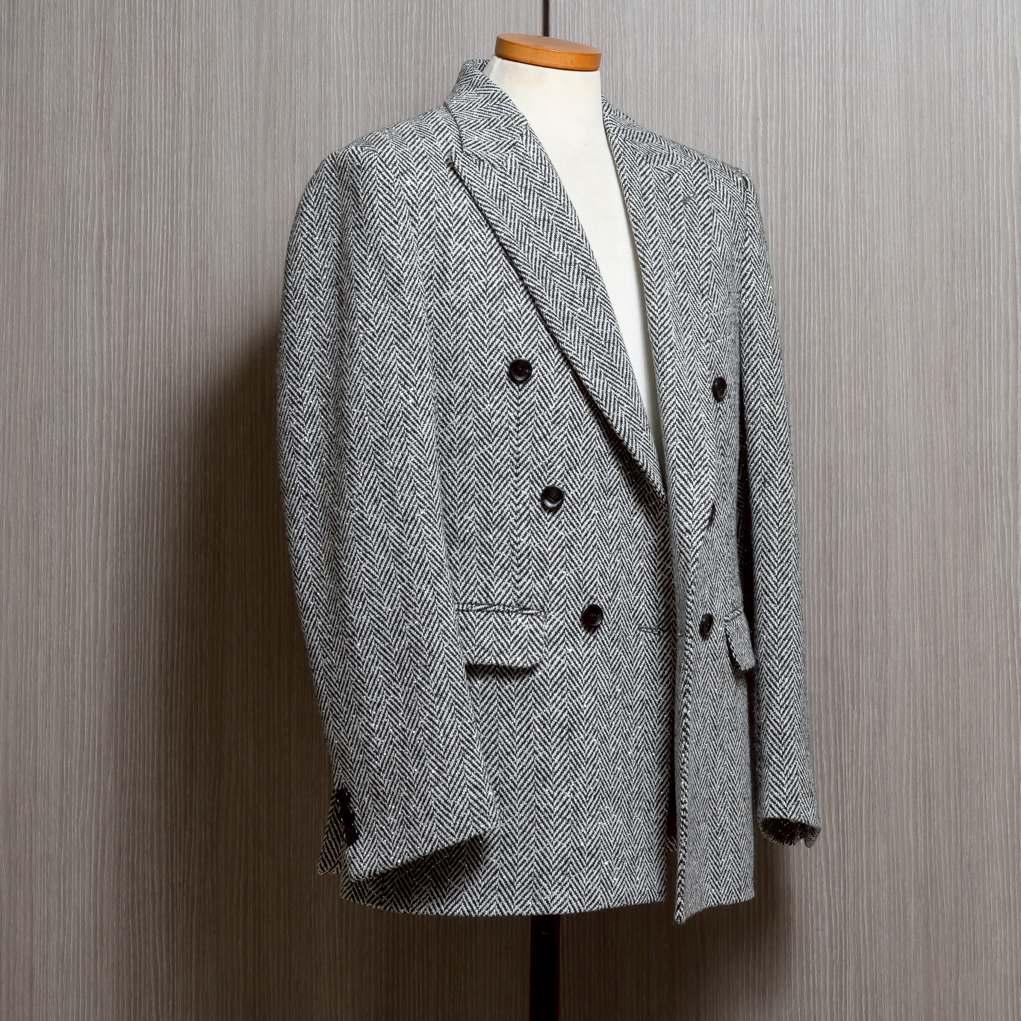 上質なウールツイードを使用したヘリンボーン柄のダブルジャケット