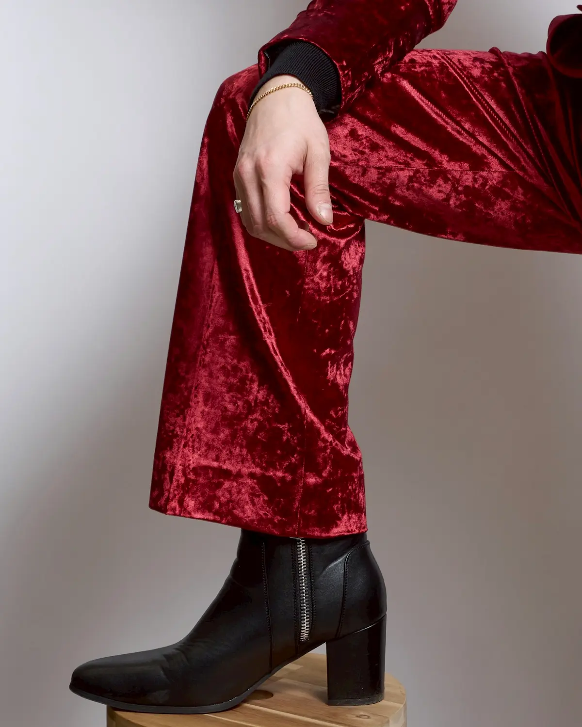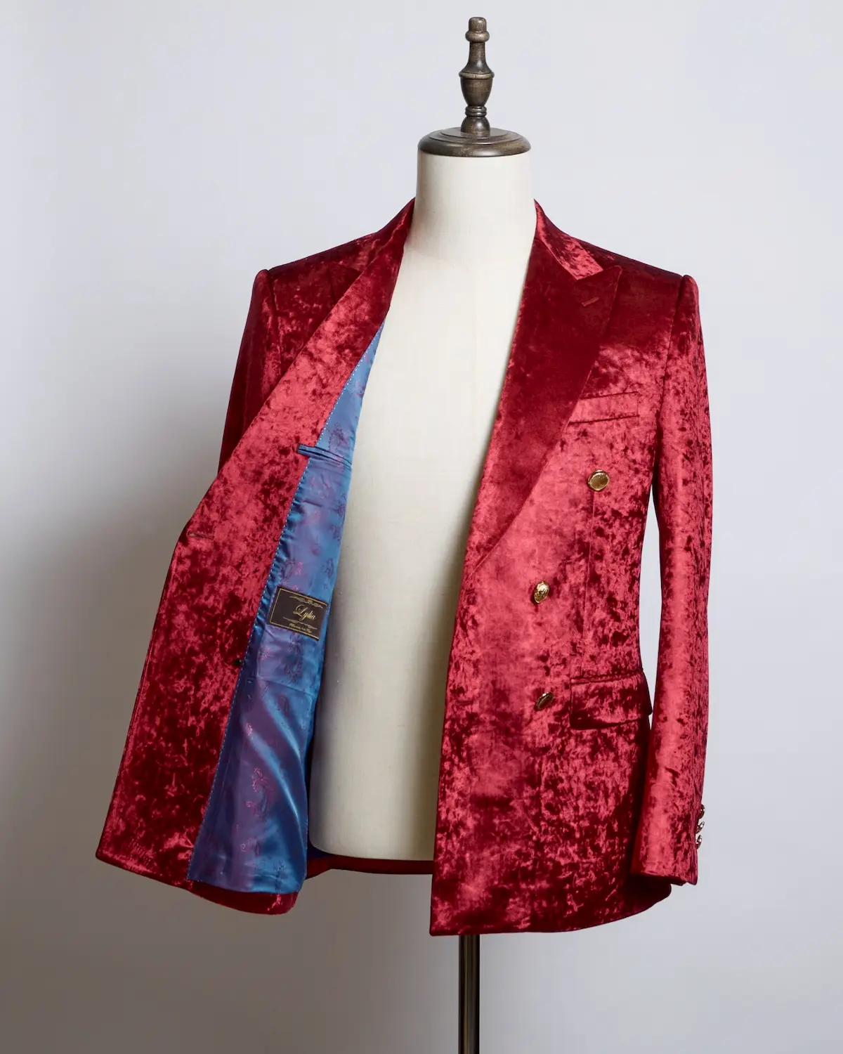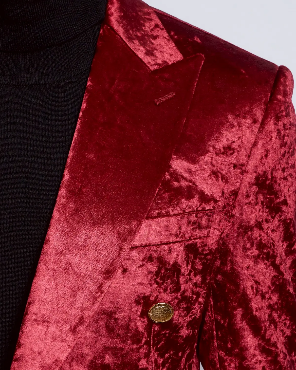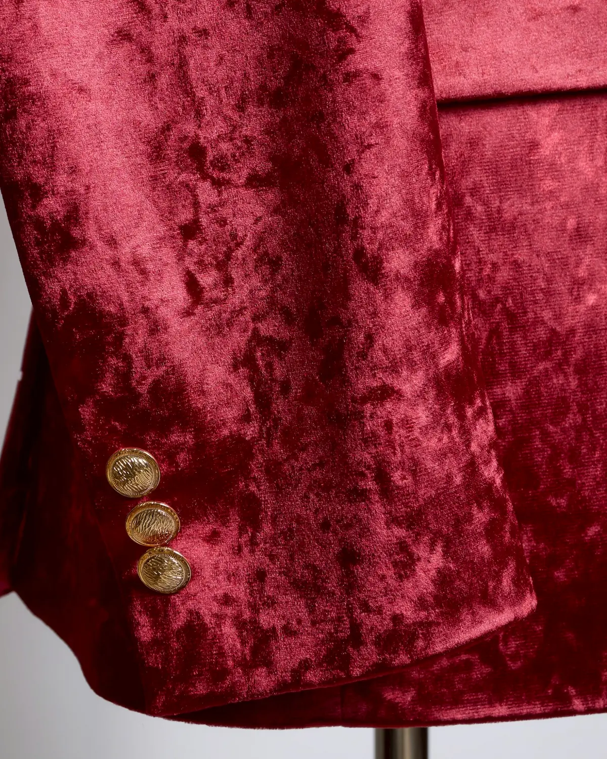 深みのあるレッドベロアを贅沢に使用した、存在感抜群のセットアップ。