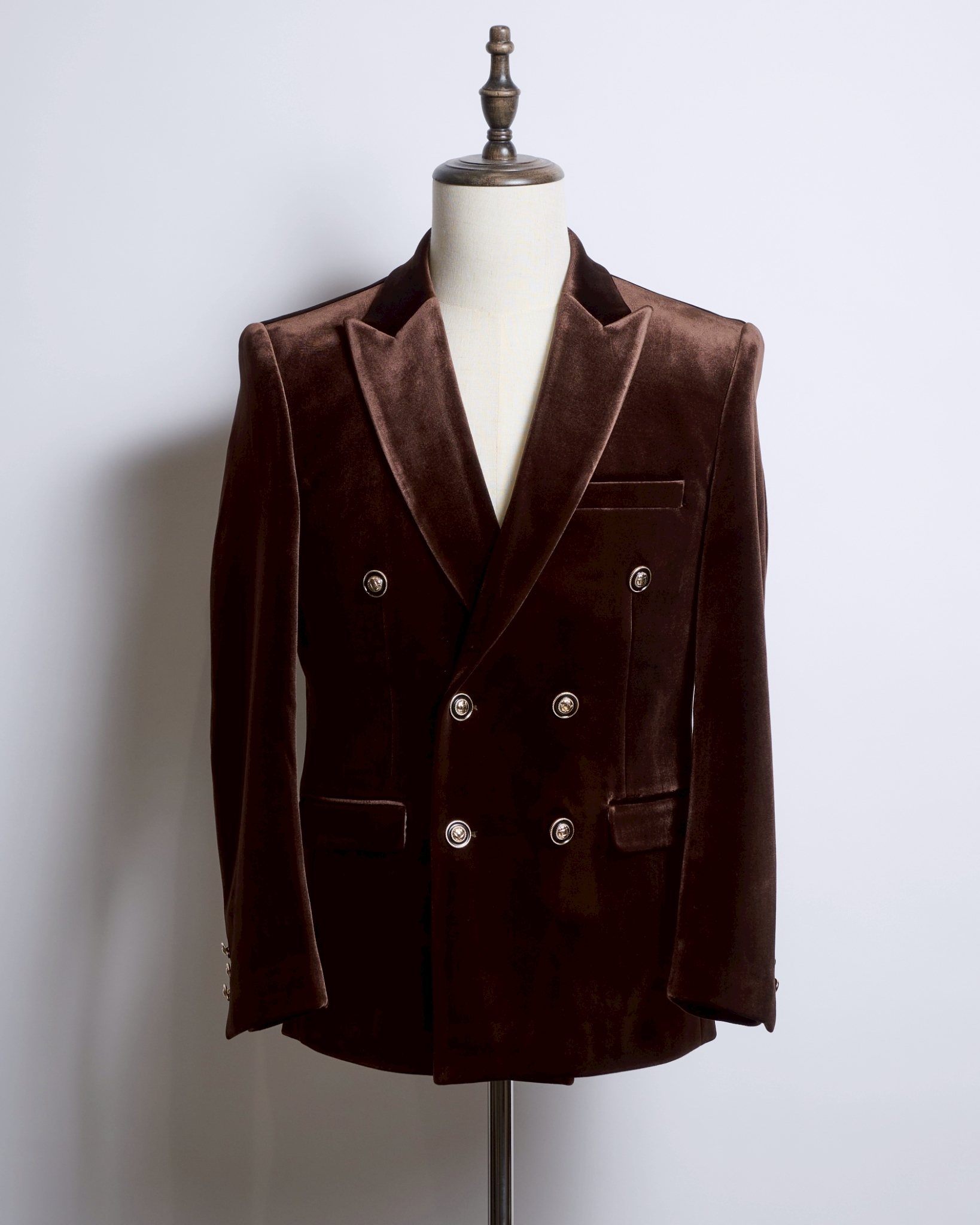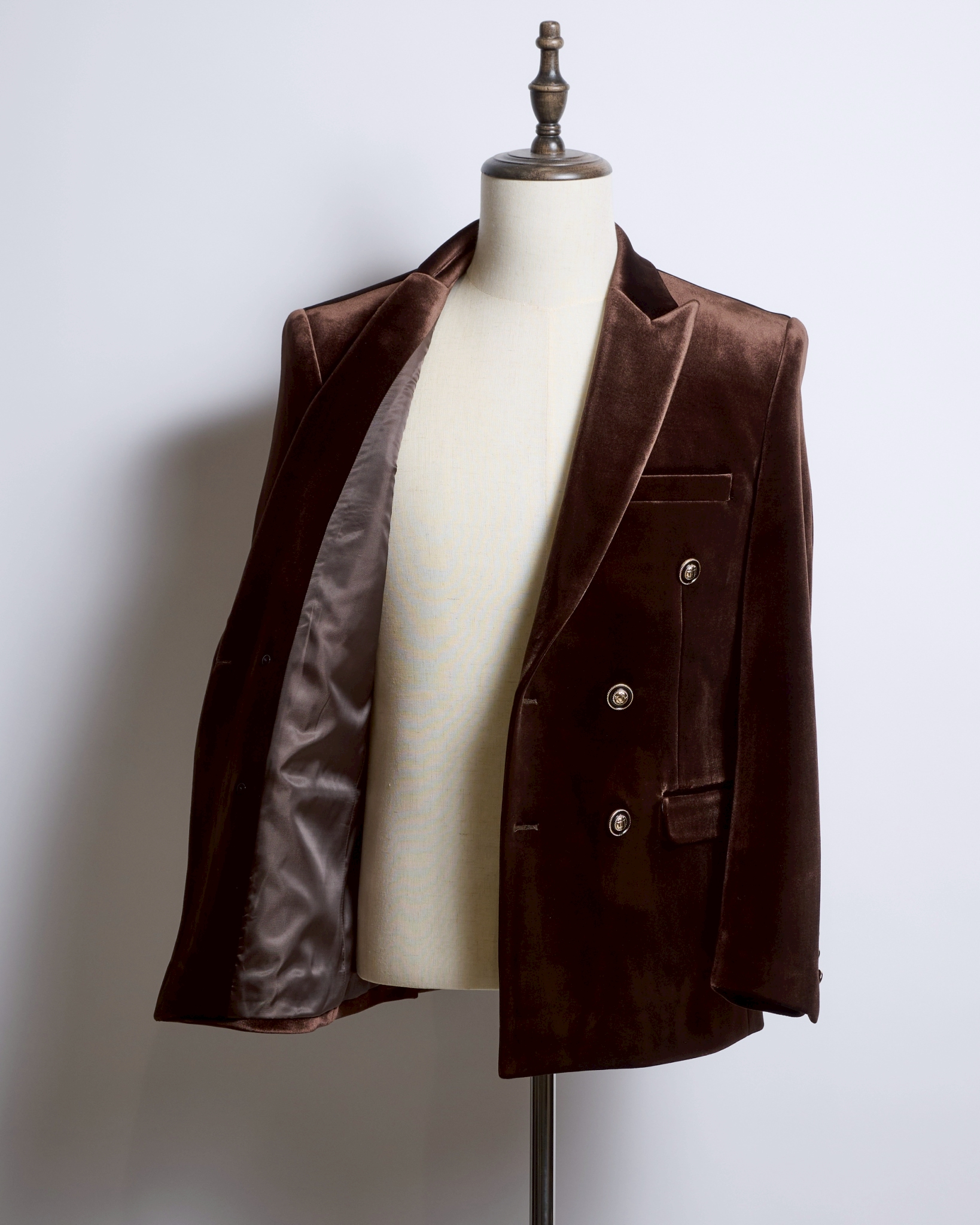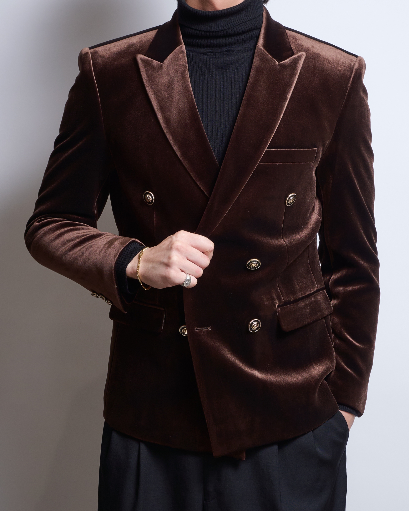 深みの艶で魅せる、ブラウンベロアのダブルジャケット