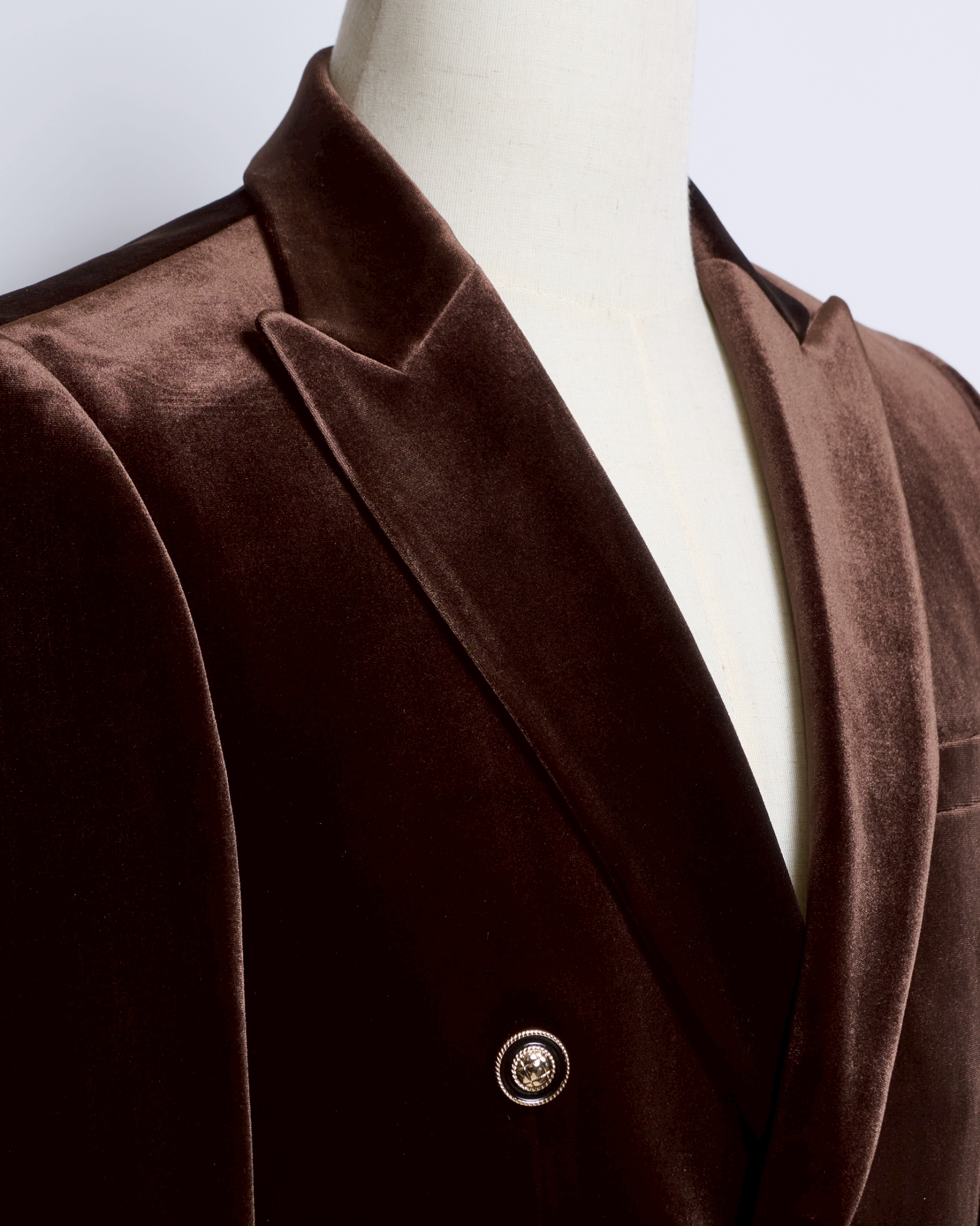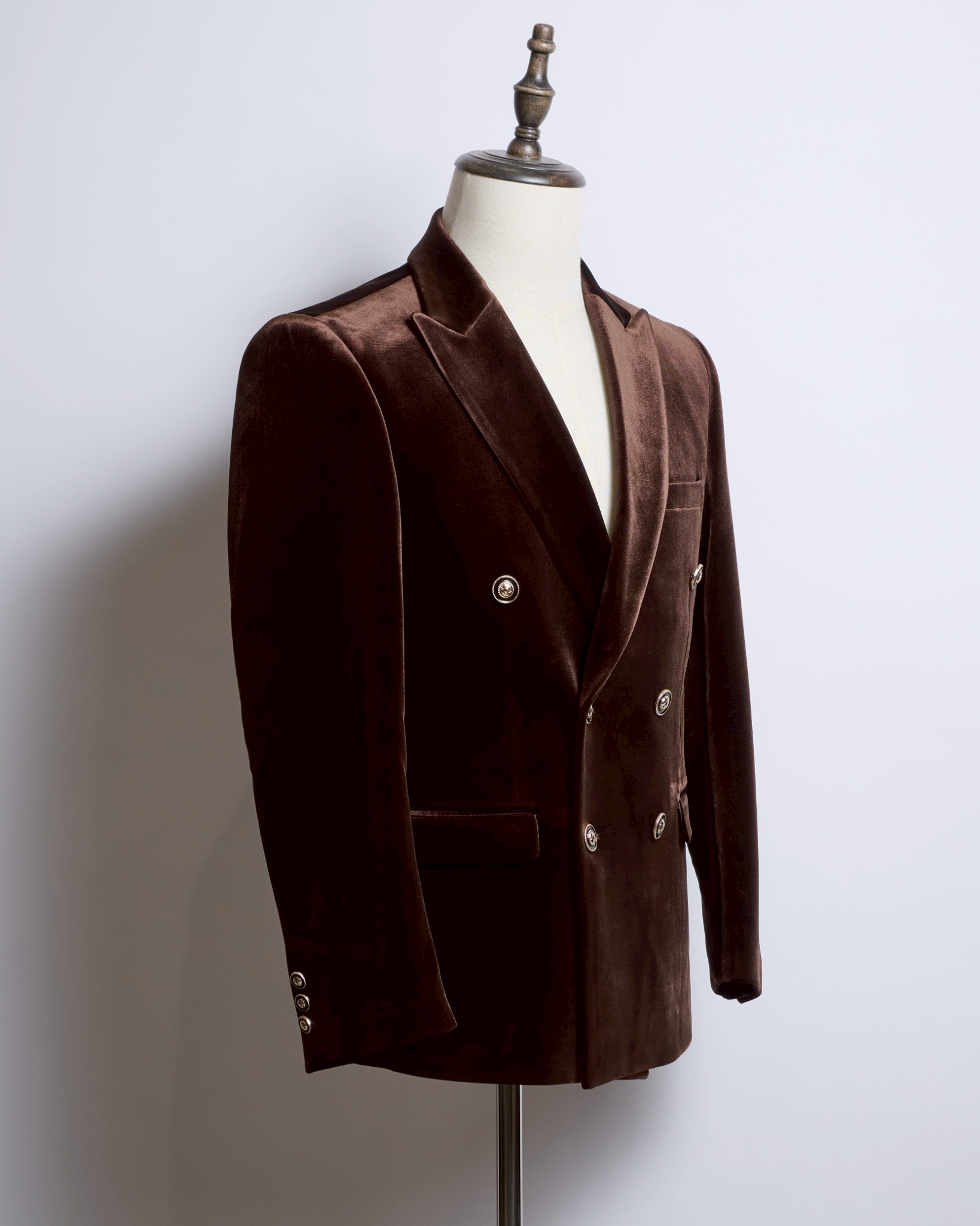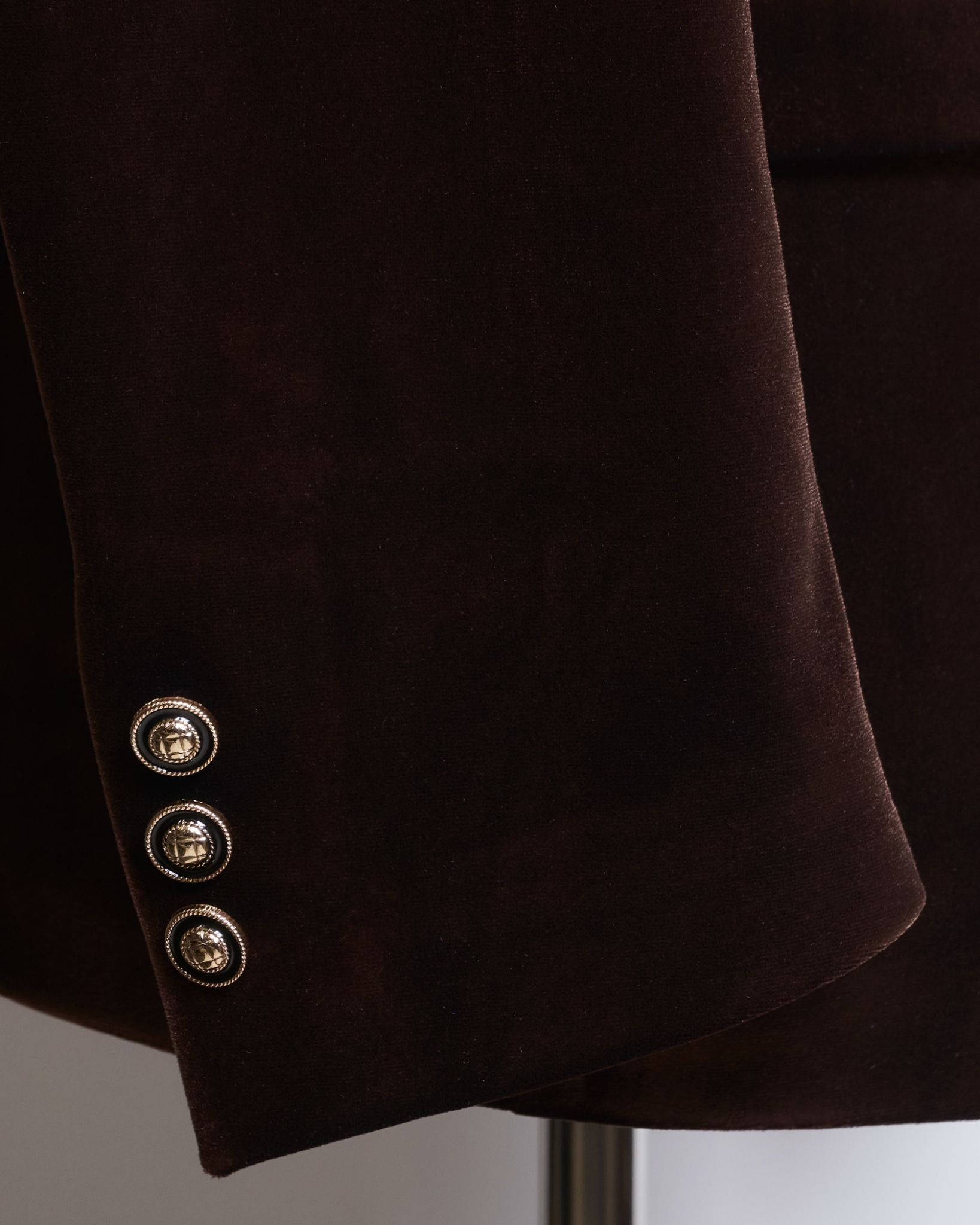 深みの艶で魅せる、ブラウンベロアのダブルジャケット