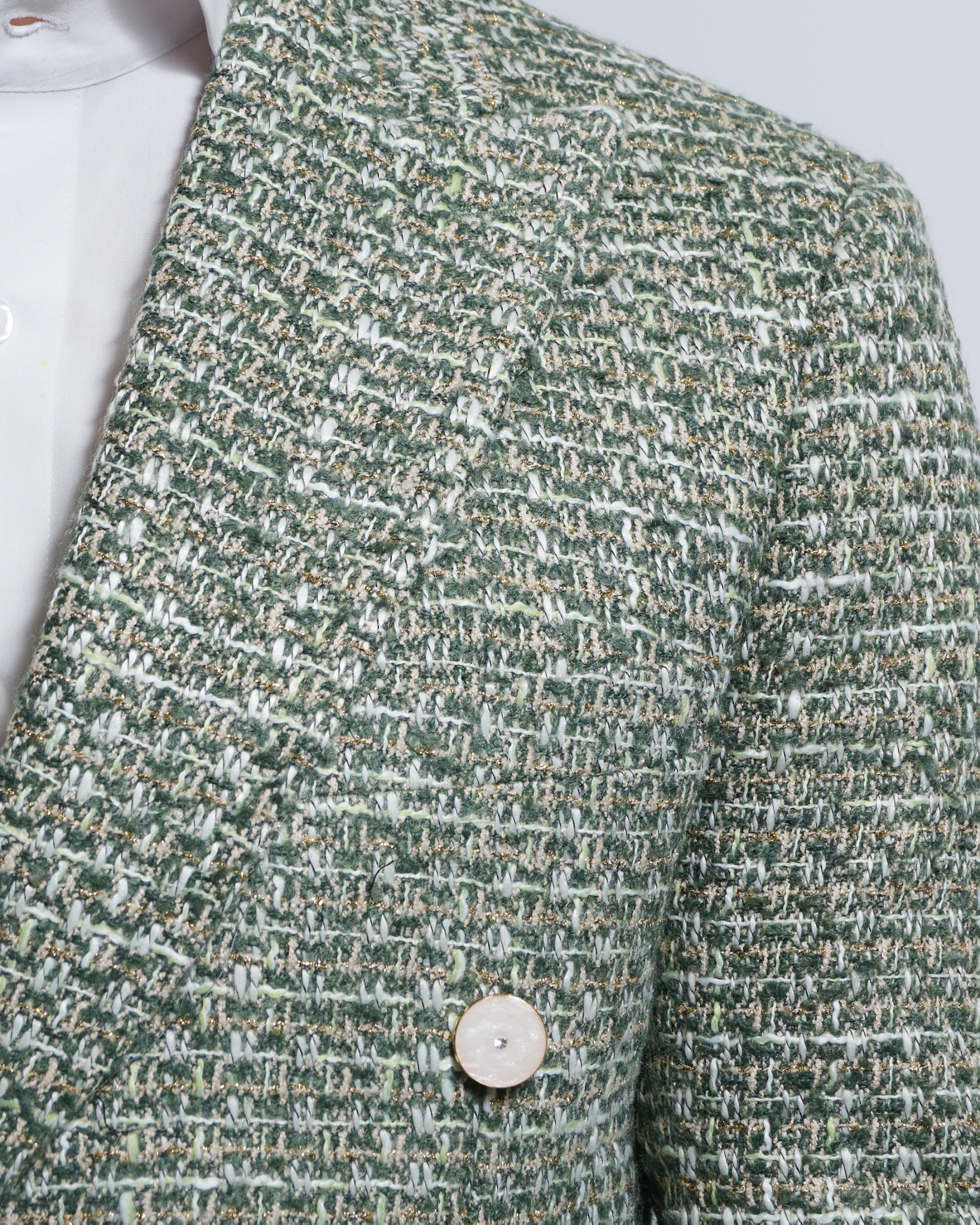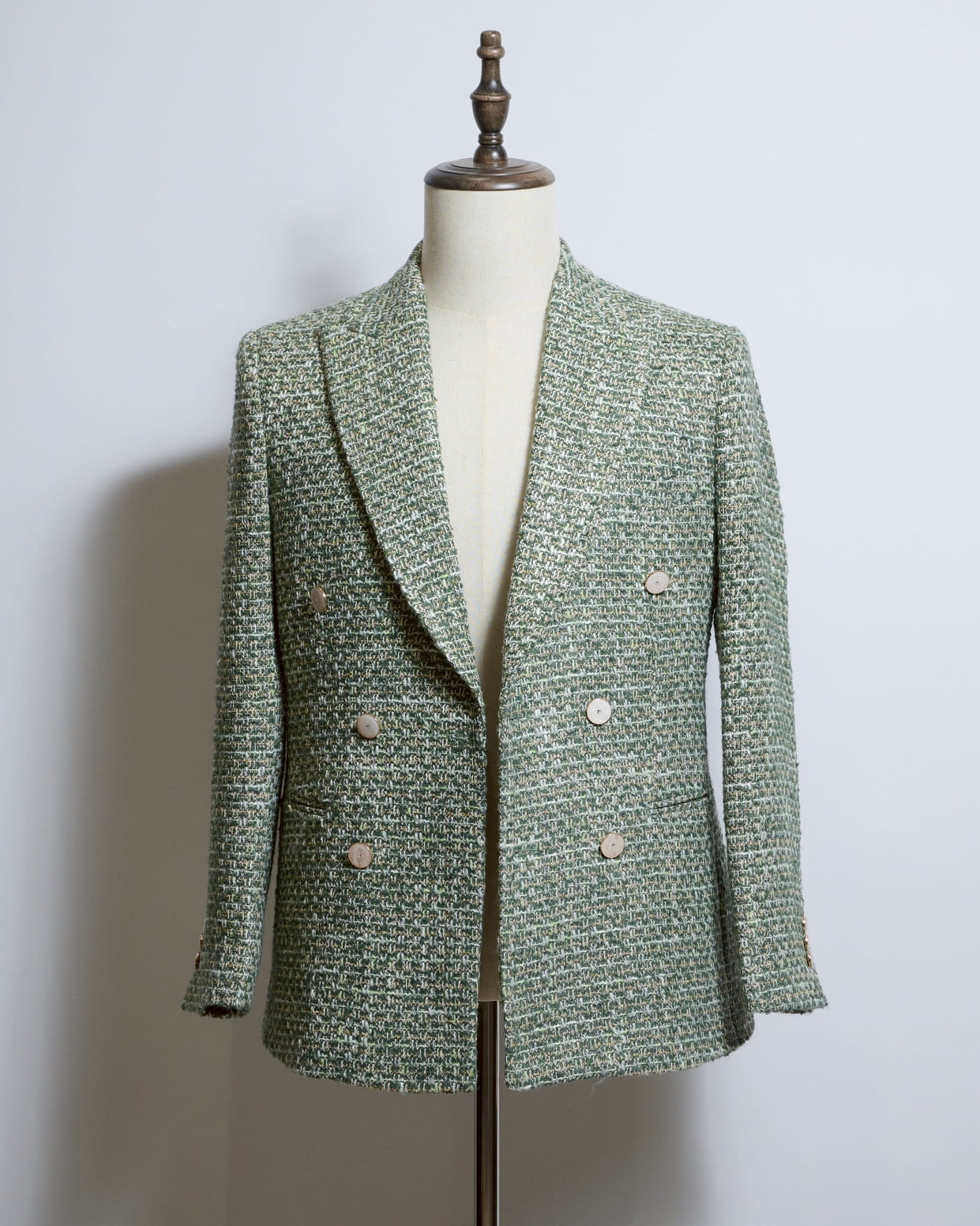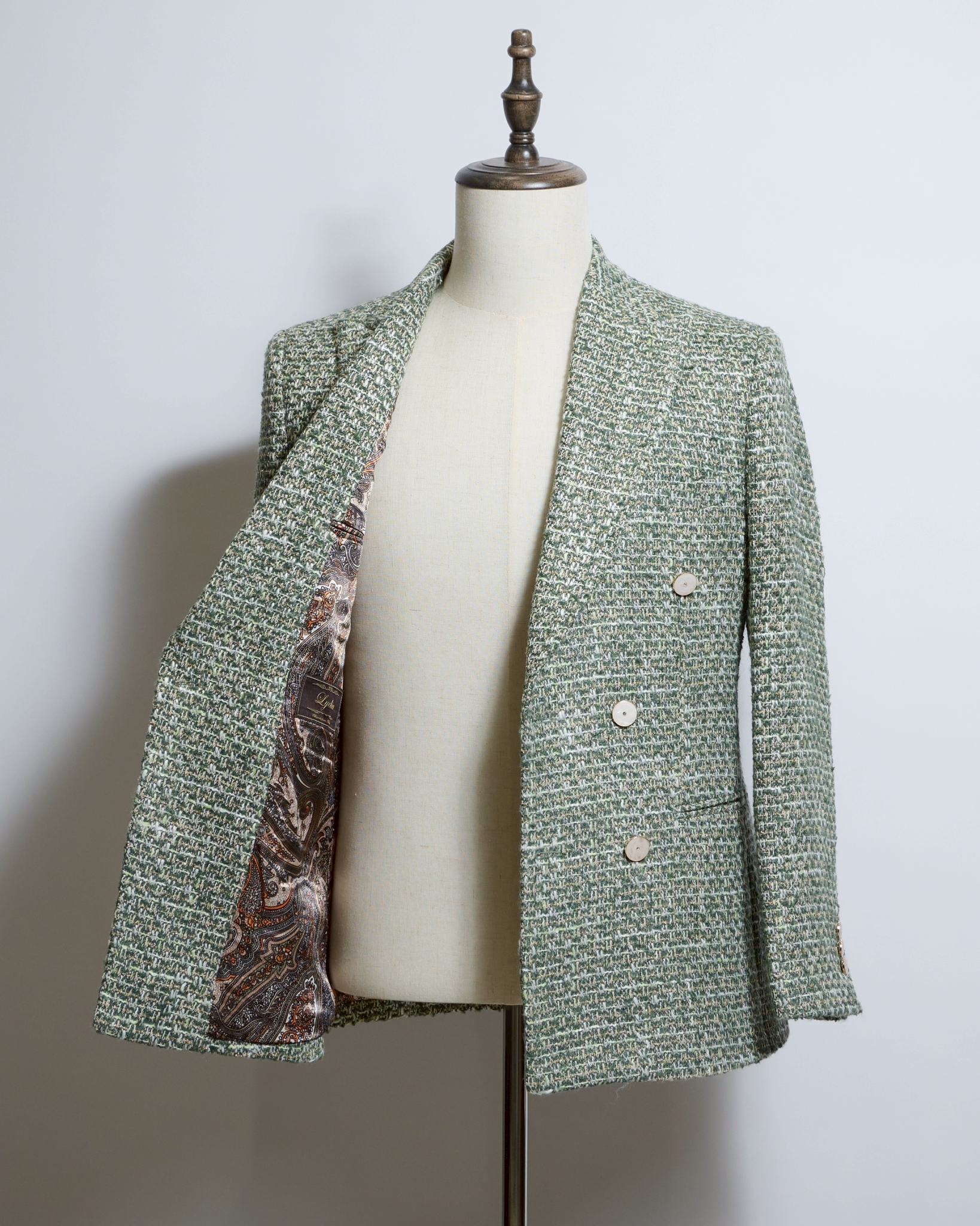 淡いミントグリーンを基調に、ホワイトとゴールドの糸を織り交ぜた