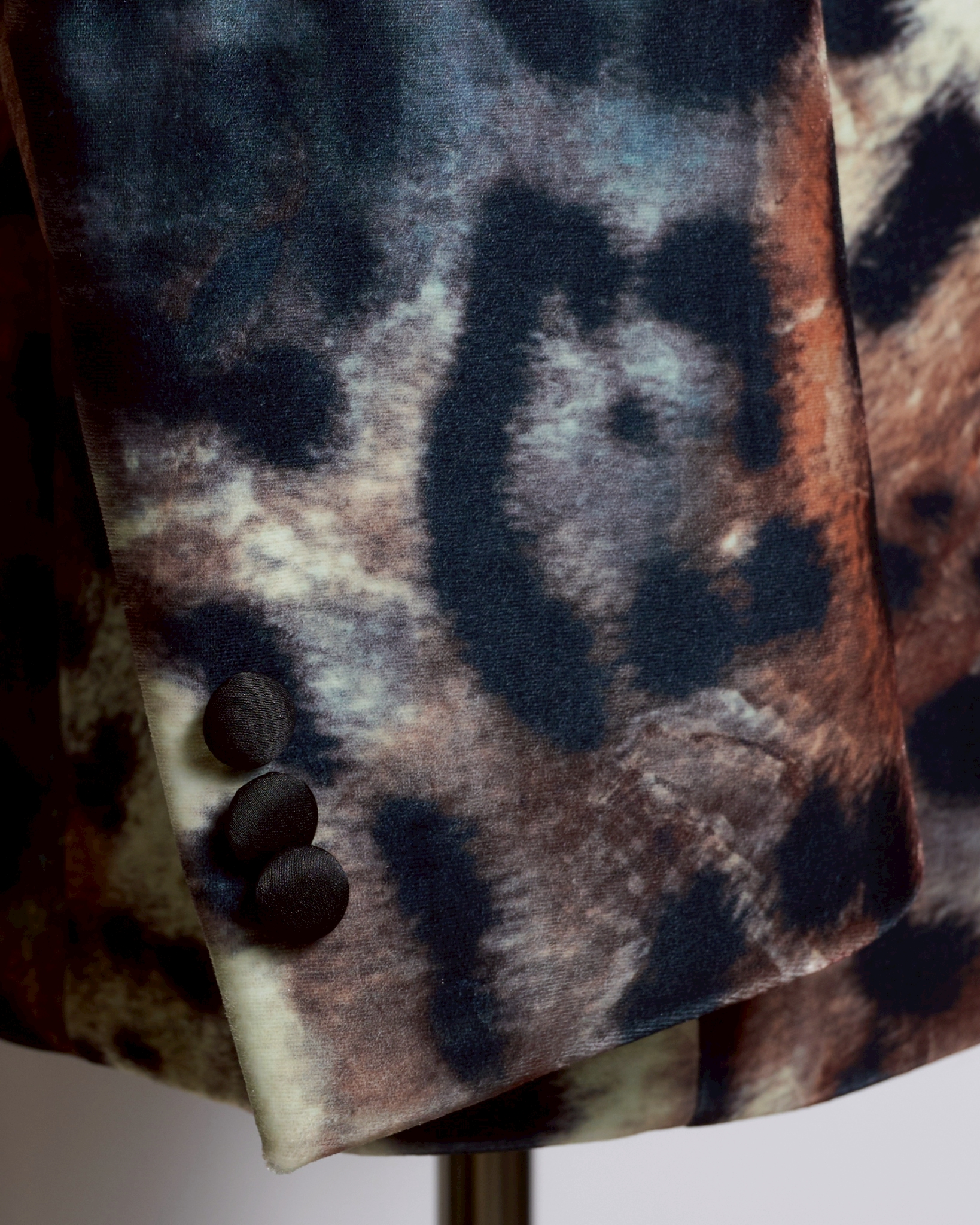 袖口のくるみボタンもベロアで統一されており、細部まで洗練されたデザインです。